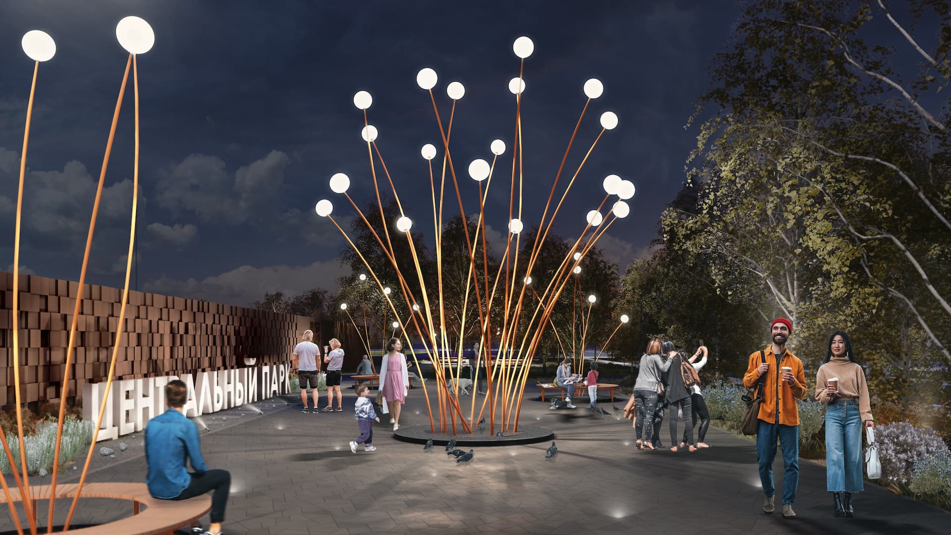 Комплекс решений по освещению и инженерному оснащению парка обеспечит безопасность и комфорт рекреации во все сезоны. Благодаря разнообразию типов освещения и градиенту освещенности по функциональным зонам формируется визуальный комфорт пребывания и уникальный облик парка.