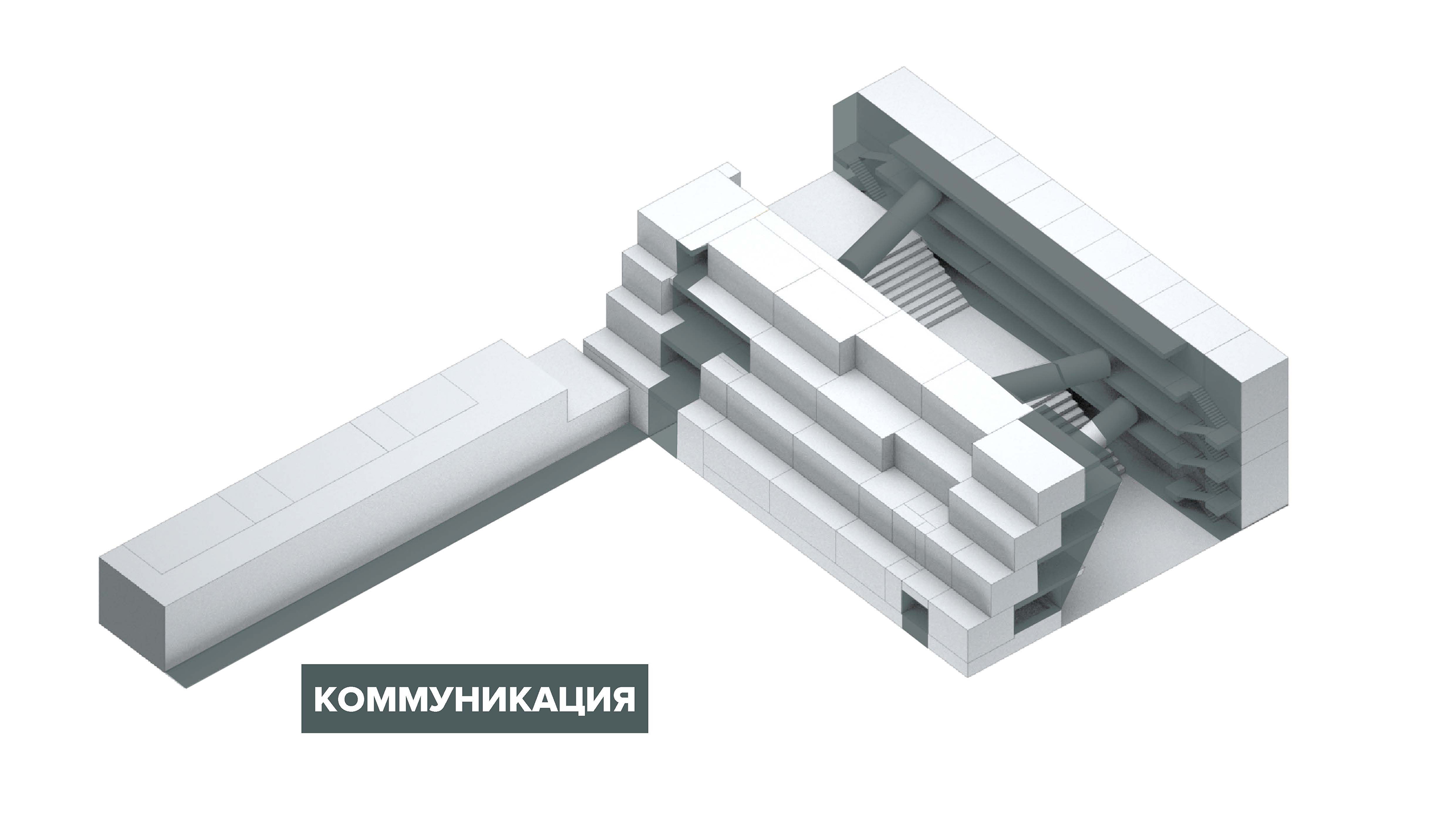 Между пластиной городского фасада образовательного центра и уступами классов школьного блока расположен «Каньон» - главное социальное и событийное пространство образовательного центра. Это центральное пространство включает рекреации школьного блока, компьютерных и лабораторных классов, вестибюль, актовый зал, лекционный зал, в него выходят кабинеты менеджеров и классы робототехники. В сценариях массовых событий пространство реконфигурируется так, что все причастные пространства могут быть активно или пассивно вовлечены в события.